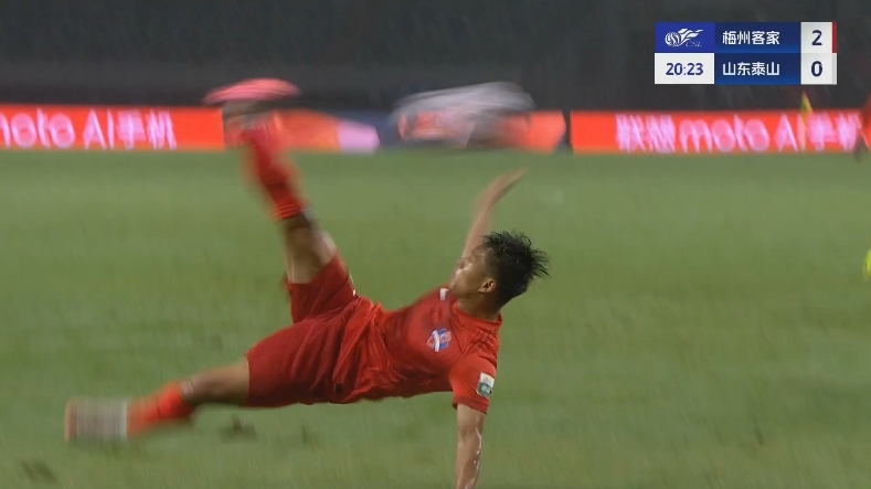 泰山20分鐘0-2落后梅州!楊超聲倒鉤破門(mén)&2場(chǎng)3球狂奔半場(chǎng)滑跪慶祝