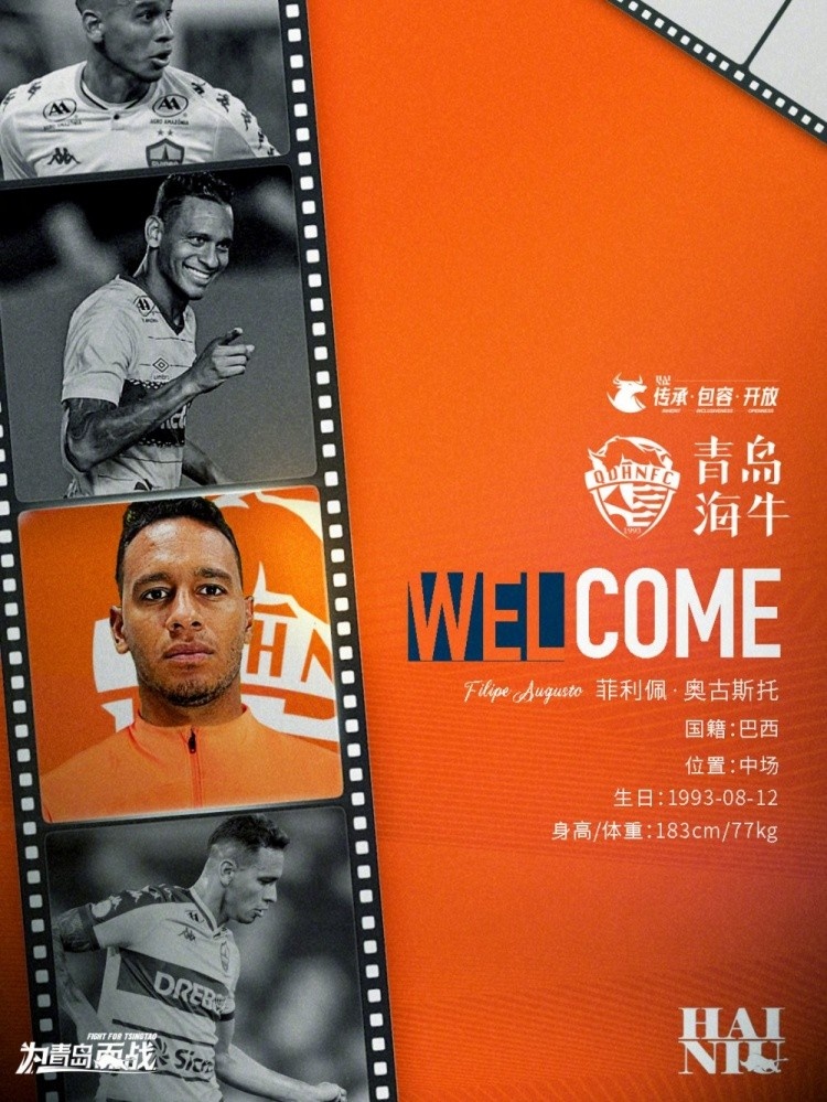 2月15日訊 昨天下午,青島海牛足球俱樂部官宣了前巴西國奧隊球員、本菲卡舊將費利佩-奧古斯托正式加盟的消息,雙方簽訂了年限為“1+1”的工作合同。據記者孫飛報道,海牛集齊了新賽季的5名外援,今天球隊將與亞泰踢熱身賽。