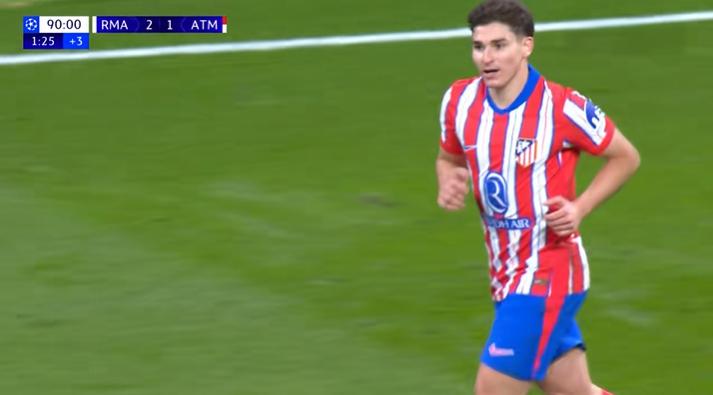 比賽第92分鐘,阿爾瓦雷斯還在全力逼搶皇馬后防,差點幫助球隊拼得一個角球機會。