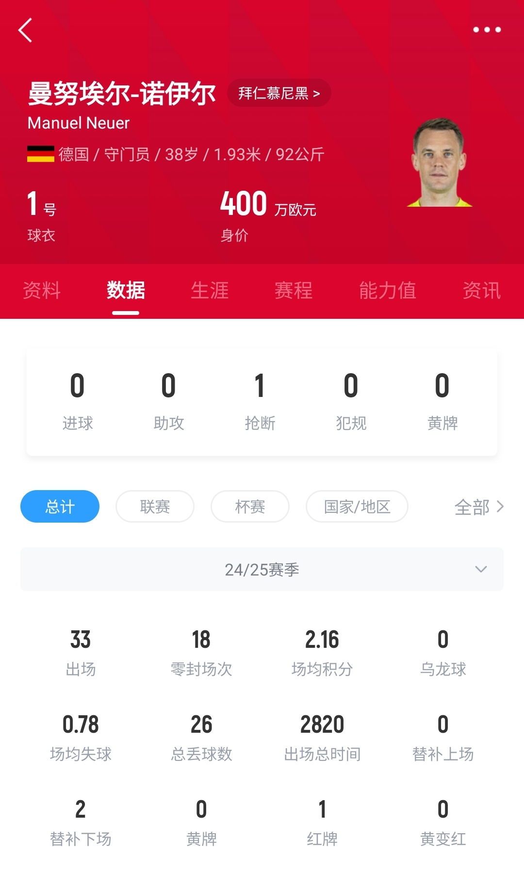 據(jù)德媒報(bào)道,諾伊爾將缺席3-4場比賽。這也意味著諾伊爾將無緣對陣?yán)瘴謳焐臍W冠1/8決賽次回合比賽。