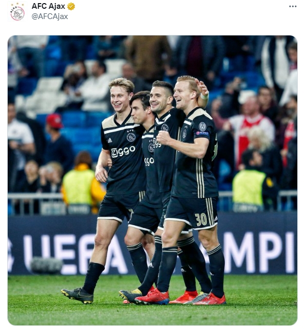 6年前的今天,歐冠1/8決賽次回合,皇馬主場1-4慘敗阿賈克斯,阿賈克斯青年軍淘汰皇馬殺入八強。阿賈克斯官推曬出多圖,重溫這場經(jīng)典戰(zhàn)役。