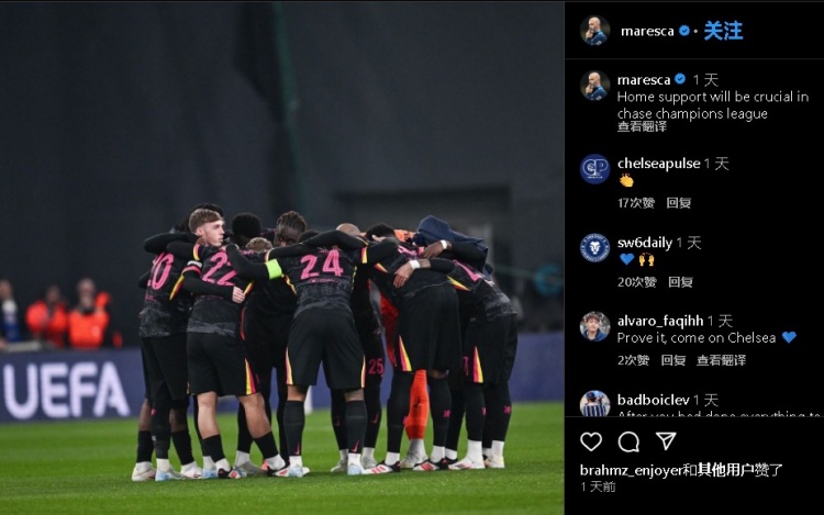 馬雷斯卡社媒寫道:主場球迷的支持,是我們爭奪歐冠資格的動力!(英超前四)