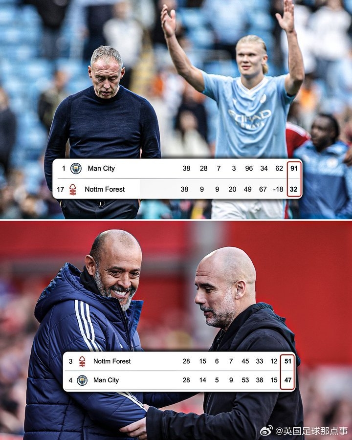 【巨大進(jìn)步】上賽季曼城領(lǐng)先森林59分,現(xiàn)在森林領(lǐng)先曼城4分?