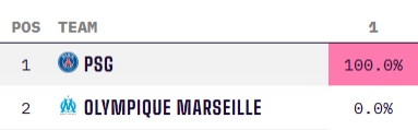 法甲最新奪冠概率預測: