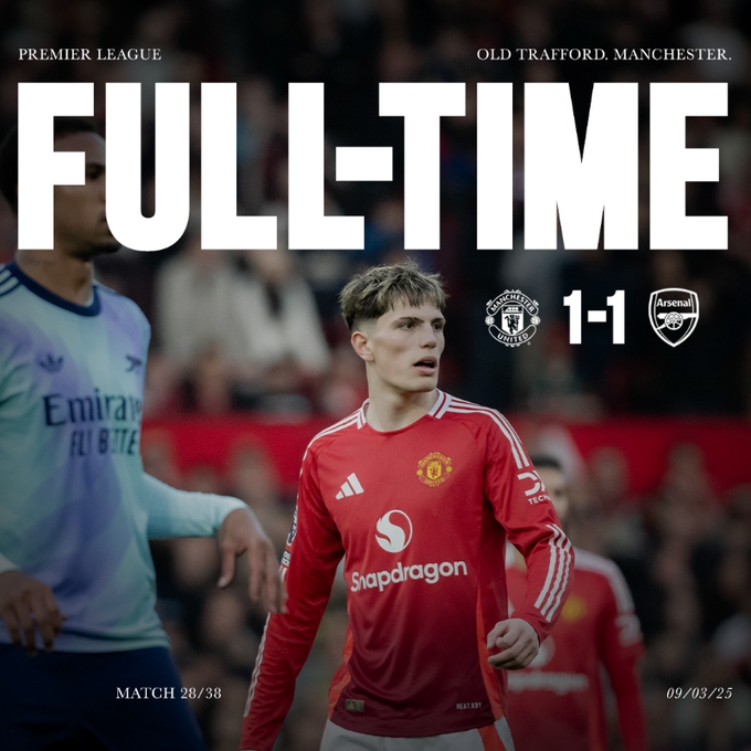 03月10日訊 英超第28輪,曼聯1-1打平阿森納。