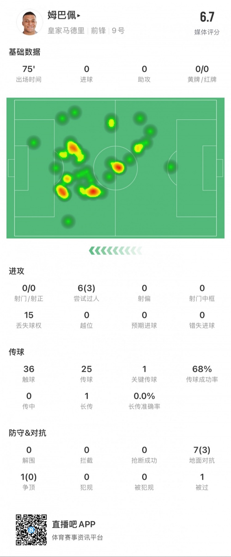 姆巴佩本場(chǎng)數(shù)據(jù):0射門,3次成功過人,1次關(guān)鍵傳球?