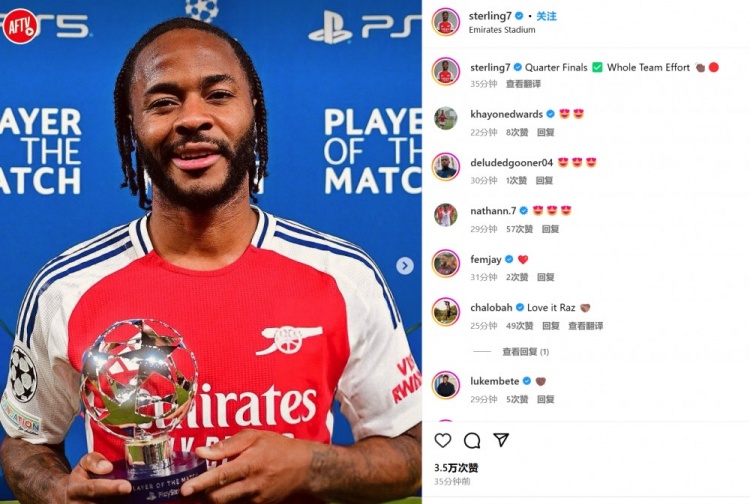 好起來了!斯特林兩送助攻,社媒曬全場最佳獎杯:晉級八強!?